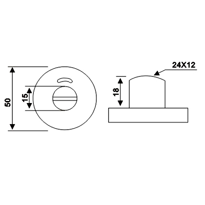 The Restroom Indicator features a circular panel with an overall diameter of 50mm. A small red and green window on the front displays a display width of approximately 15mm. The inner knob measures 24 x 12mm and is 18mm thick, making it suitable for long-term stable performance in high-frequency environments.