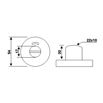 The Restroom Indicator Lock features a circular panel with an overall diameter of 54mm. It features a 22x10mm knob-style handle, a 30mm thick panel, and a 17mm wide indicator hole. It is widely suitable for use in public spaces such as shopping malls, office buildings, hotels, schools, and airports, helping managers enhance the venue's image while providing clear privacy protection for users.