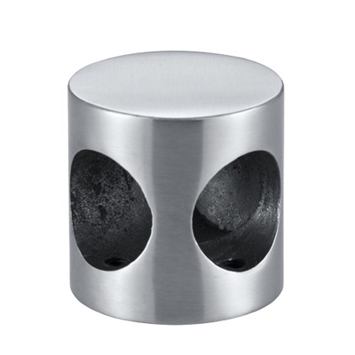 Fixed Glass Partition Fittings are cylindrical in shape, with a 45mm diameter and a height matching the diameter. The internal opening is 25mm in diameter, and features symmetrical 90° slots on both sides, along with screw holes for fastening, making them suitable for installing common glass or tubing sizes.